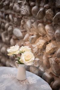 Zakwaterowanie obejmuje jeden salon z kominkiem, jedną osobną sypialnię oraz dodatkową sypialnię znajdującą się w drugim lokalu dostępnym na terenie nieruchomości. Obie jednostki posiadają w pełni wyposażone aneksy kuchenne ze sprzętem do gotowania, lodówkami, naczyniami kuchennymi i stołami jadalnymi. Goście mają do dyspozycji telewizory z płaskim ekranem i usługami streamingowymi oraz zestawy do parzenia kawy i herbaty wraz z czajnikami elektrycznymi i ekspresami do kawy. Łazienki wyposażone są w prysznice lub wanny, bidety oraz suszarki do włosów.
